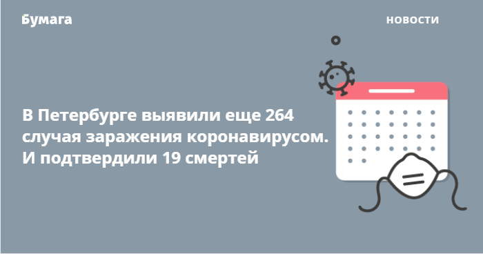 Актуальные новости о распространении COVID-19 в городе читайте в рубрике «Бумаги» «Коронавирус в Петербурге».