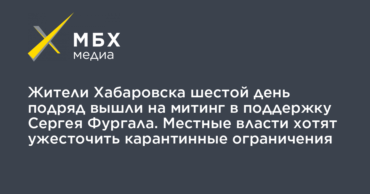 Жители Хабаровска шестой день подряд вышли на митинг в поддержку Сергея Фургала. Местные власти хотят ужесточить карантинные ограничения