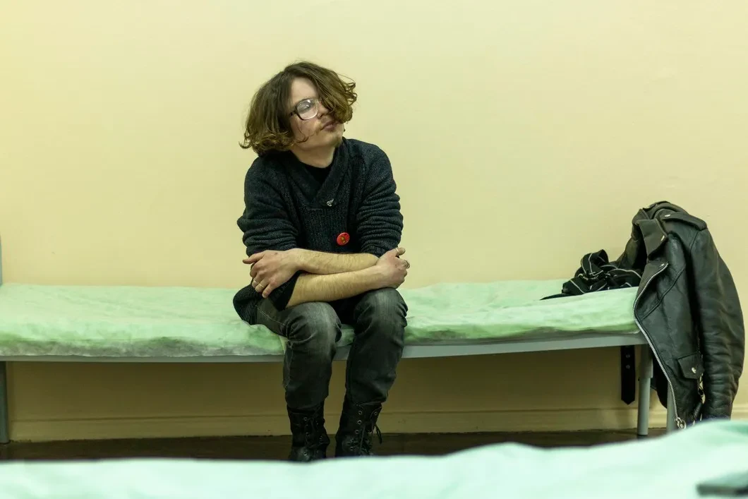 Фельдшер настойчиво предлагает юноше пройти отдохнуть в палате — видимо, чтобы мне удалось заснять в ее стенах хоть кого-нибудь. Парень не сопротивлялся, безропотно отдал гитару и паспорт на хранение как ценные вещи. Уже находясь в палате, разговорился —