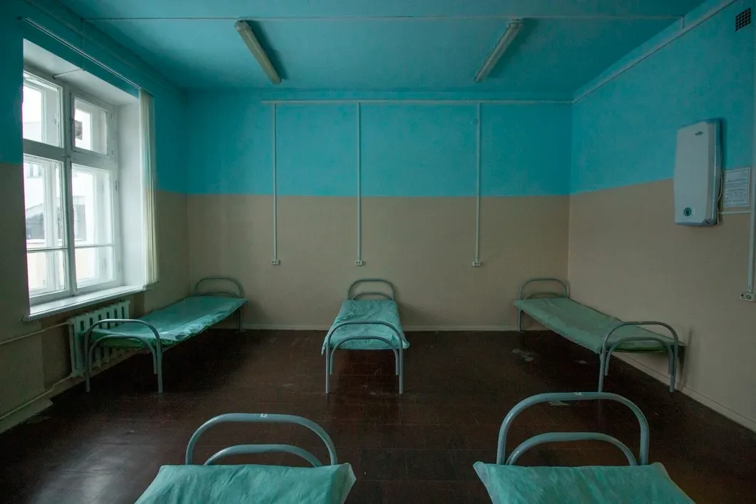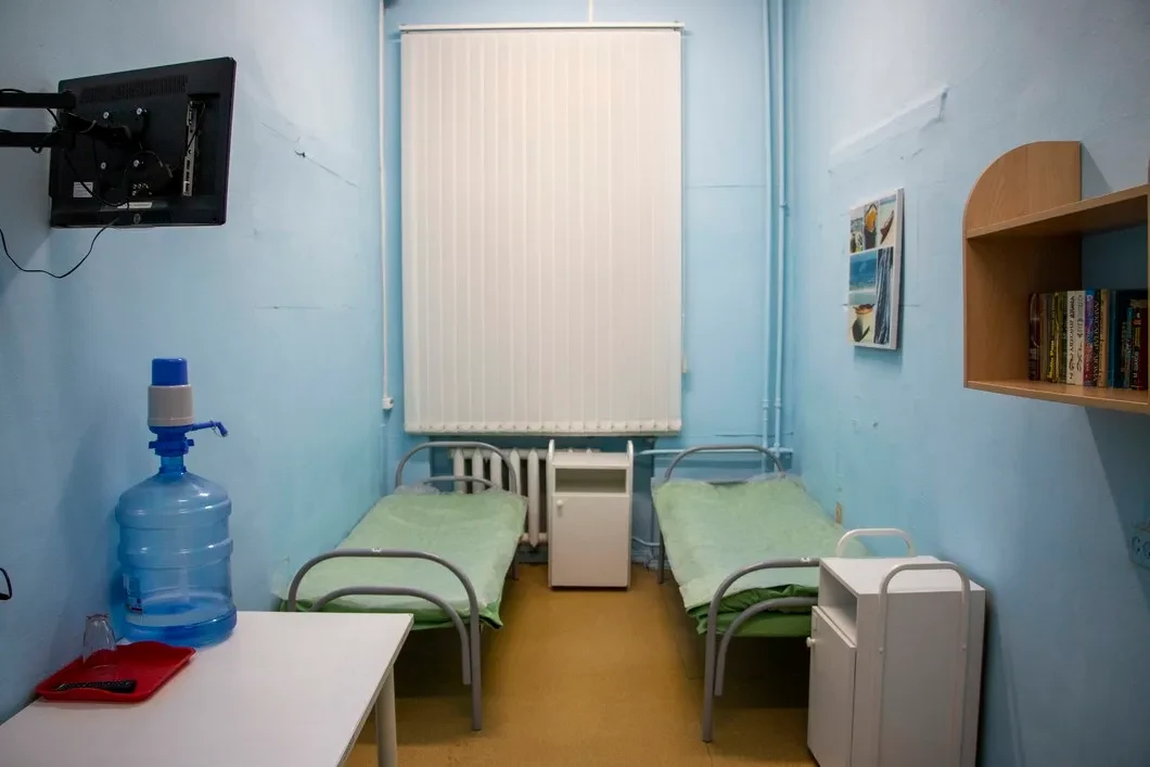 Официальное название учреждения — «Пункт оказания помощи лицам, находящимся в состоянии алкогольного опьянения и утратившим способность самостоятельно передвигаться или ориентироваться в окружающей обстановке, не нуждающимся в медицинской помощи», а если коротко — «Надежда». Он открылся в 2016 году и принял уже более 30 тысяч человек при населении города в 1,26 миллиона жителей. На Яндекс.Карте «Надежда» обозначена как наркологическая клиника, но находится она в одном из корпусов 30-й городской больницы. Окна на первом этаже, где находится вытрезвитель, без решеток, что уже радует. На входе — камера видеонаблюдения, пускают только по звонку. Внутри — больничная атмосфера: длинный коридор с агитационными плакатами в советском стиле, по бокам палаты — две мужские, женская и две «повышенной комфортности». Всего здесь могут разместиться до 30 человек, но сейчас пусто.