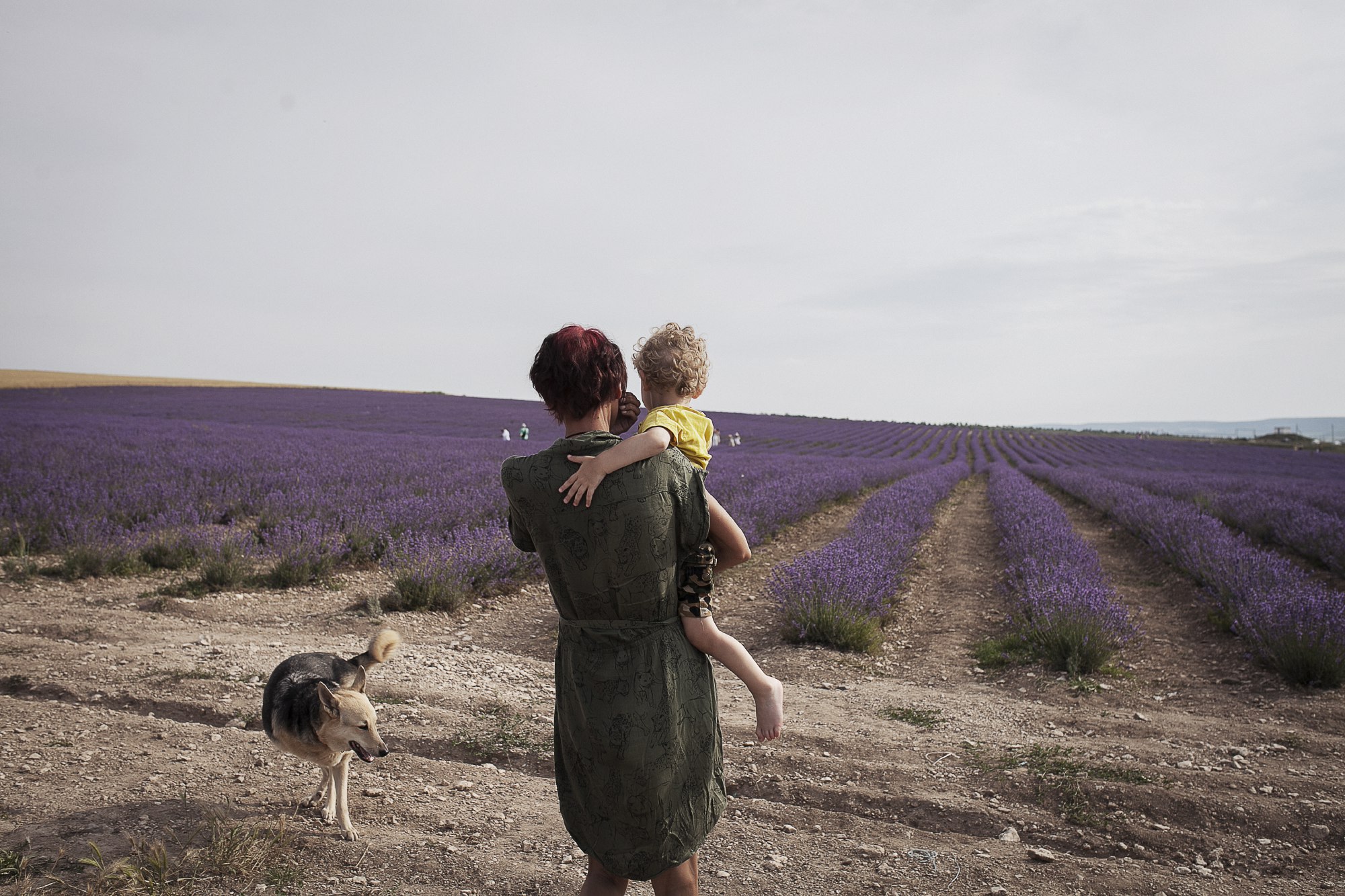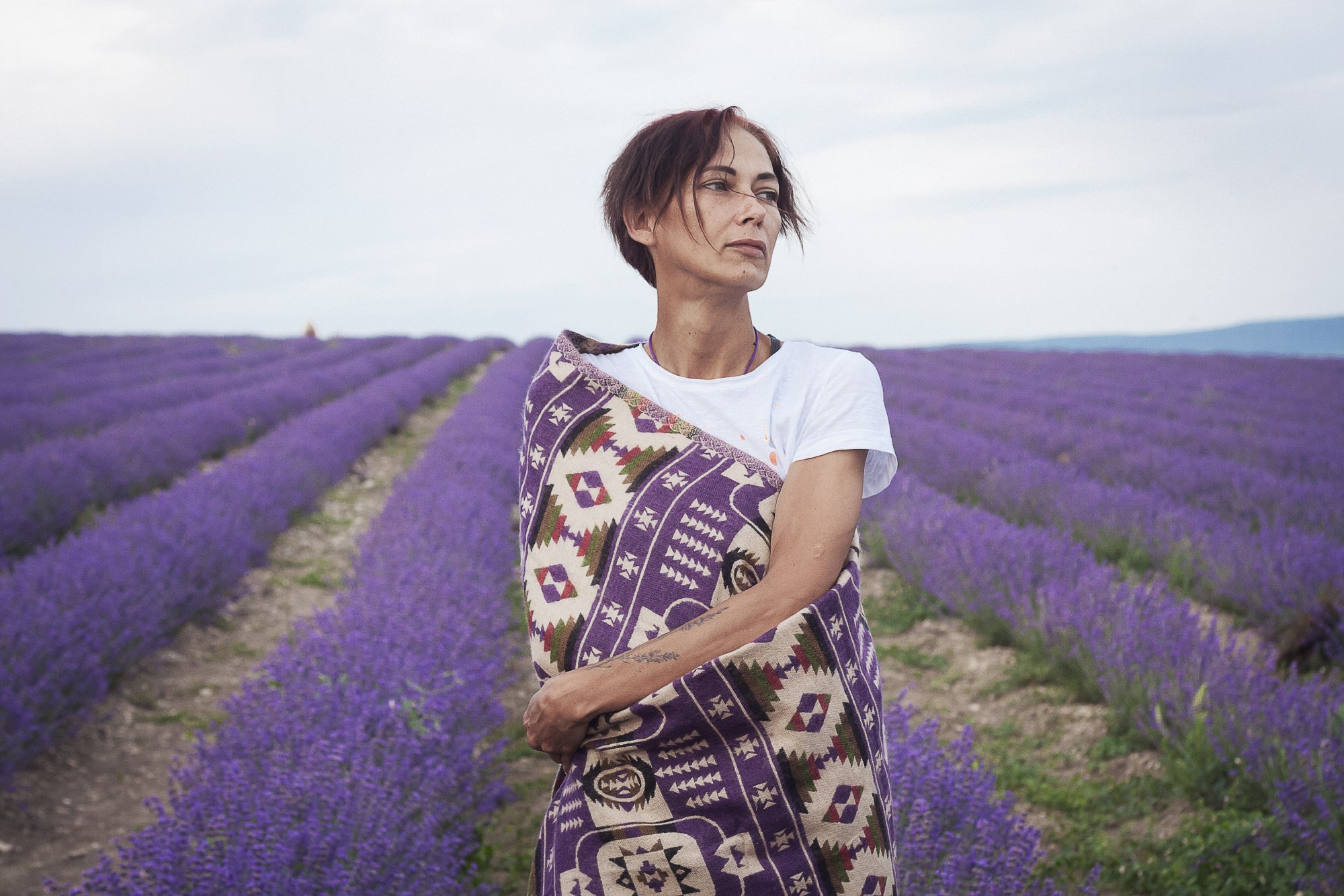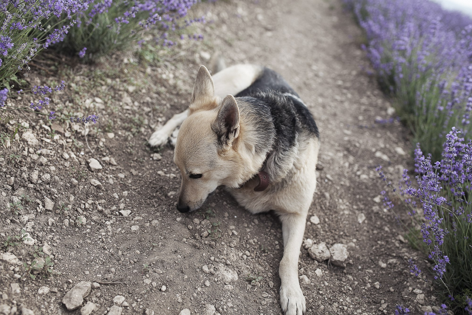 Ирина трехлапая собака тоже приехала с ней в лавандовое поле — и, кажется, была вполне довольна