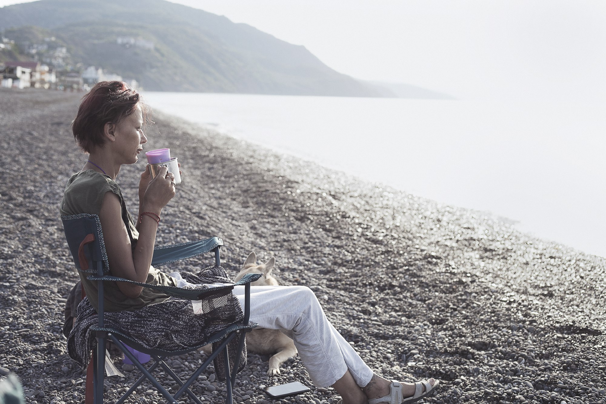 Ира в кемпинге на побережье Черного моря, собирается в путь