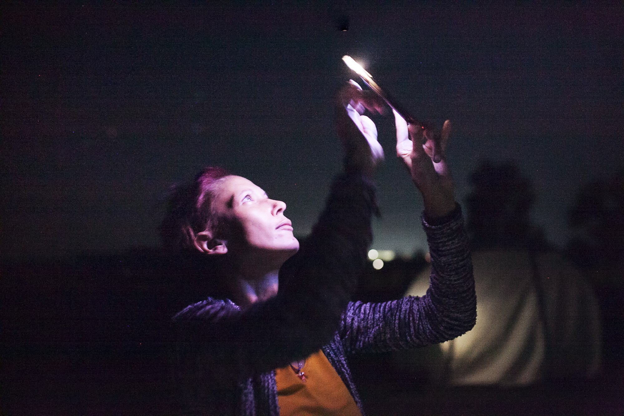 Ирина рассматривает созвездия через специальное приложение в смартфоне