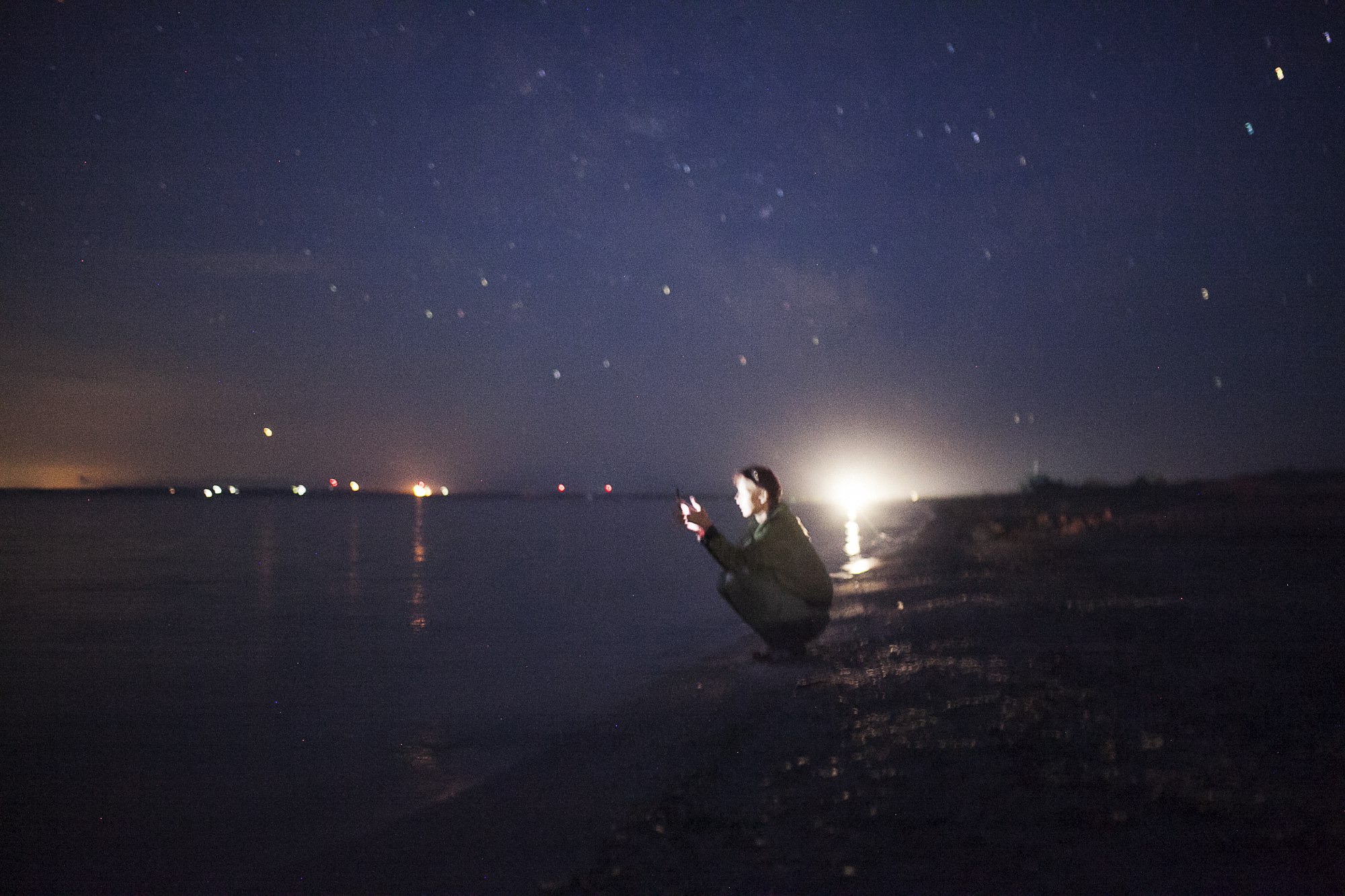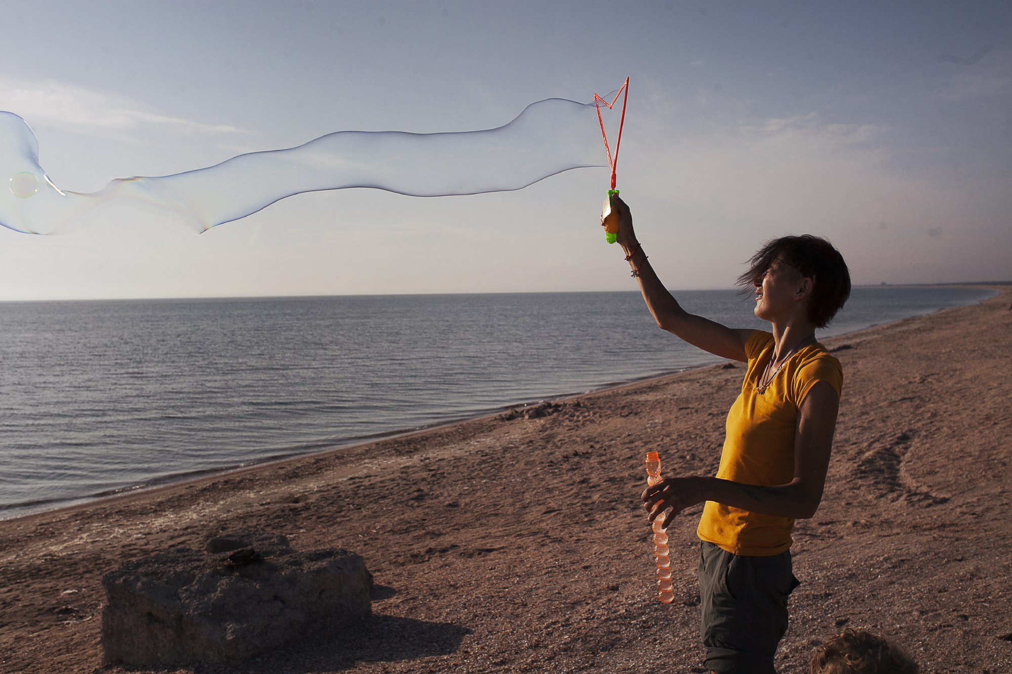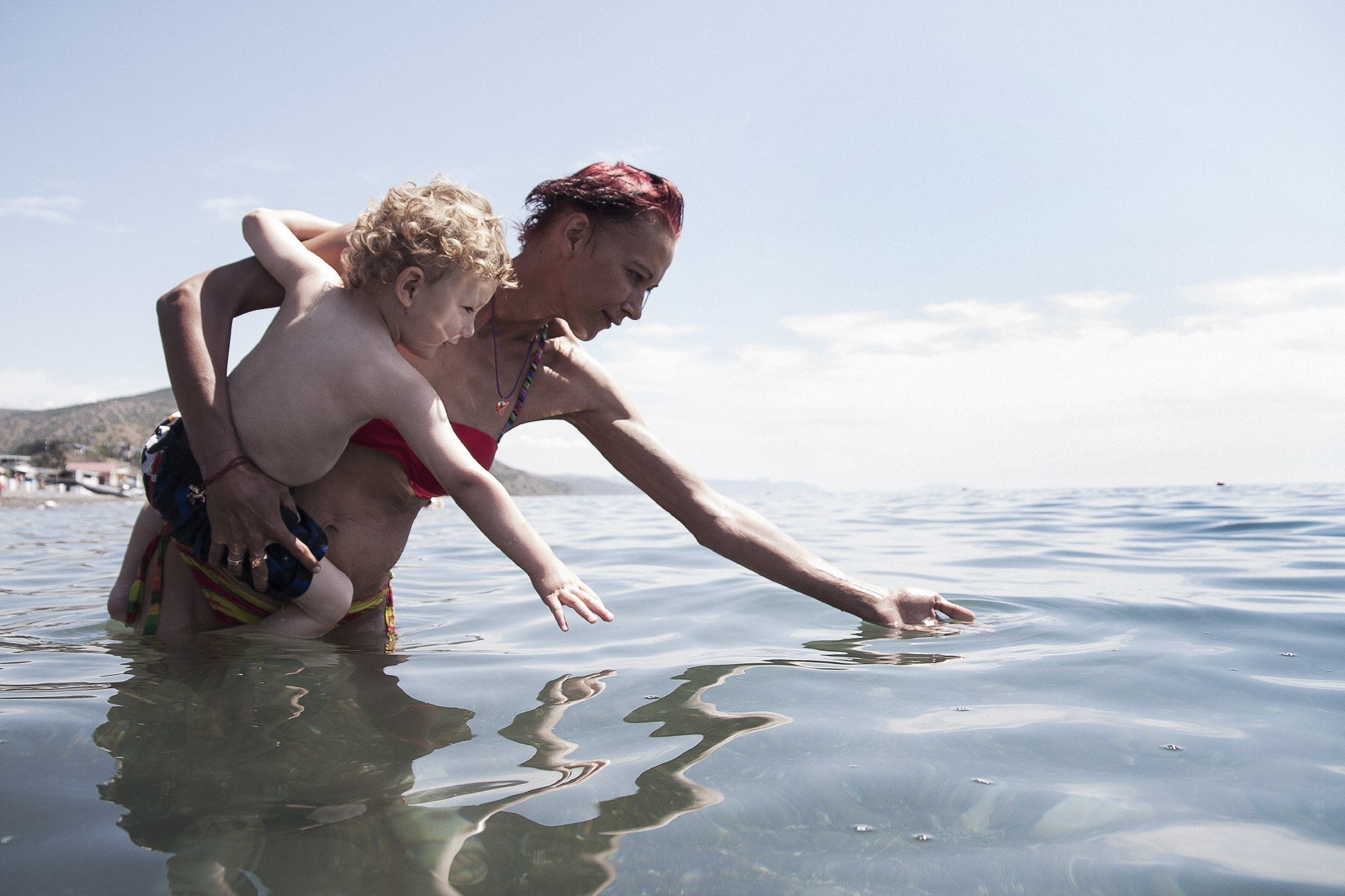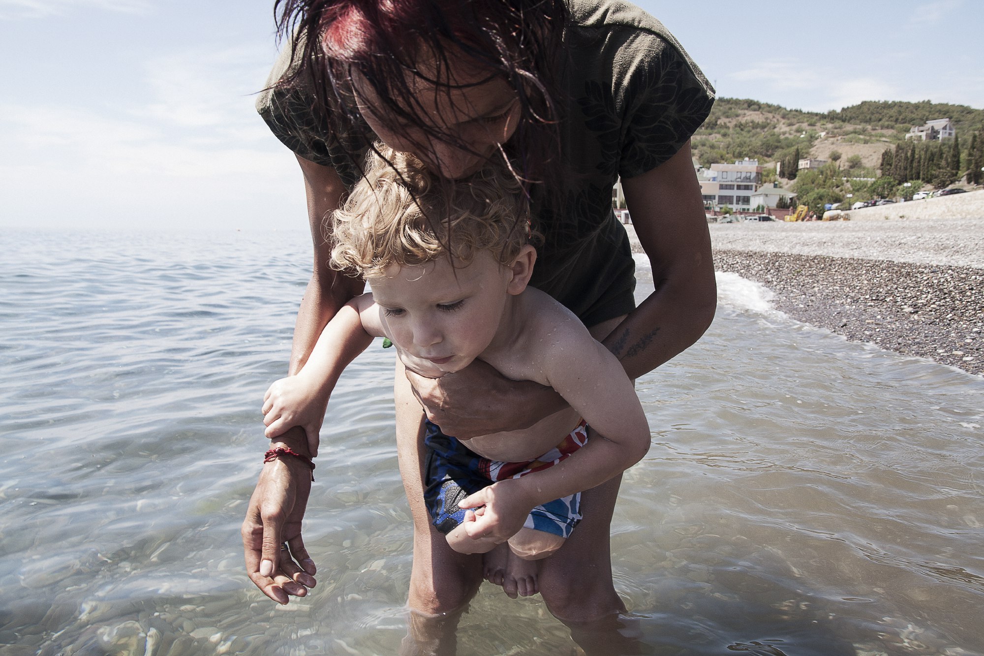 Трехдневный путь из Самары привел Иру к Азовскому побережью Крыма. Вместе с младшим сыном она рассматривает морское дно