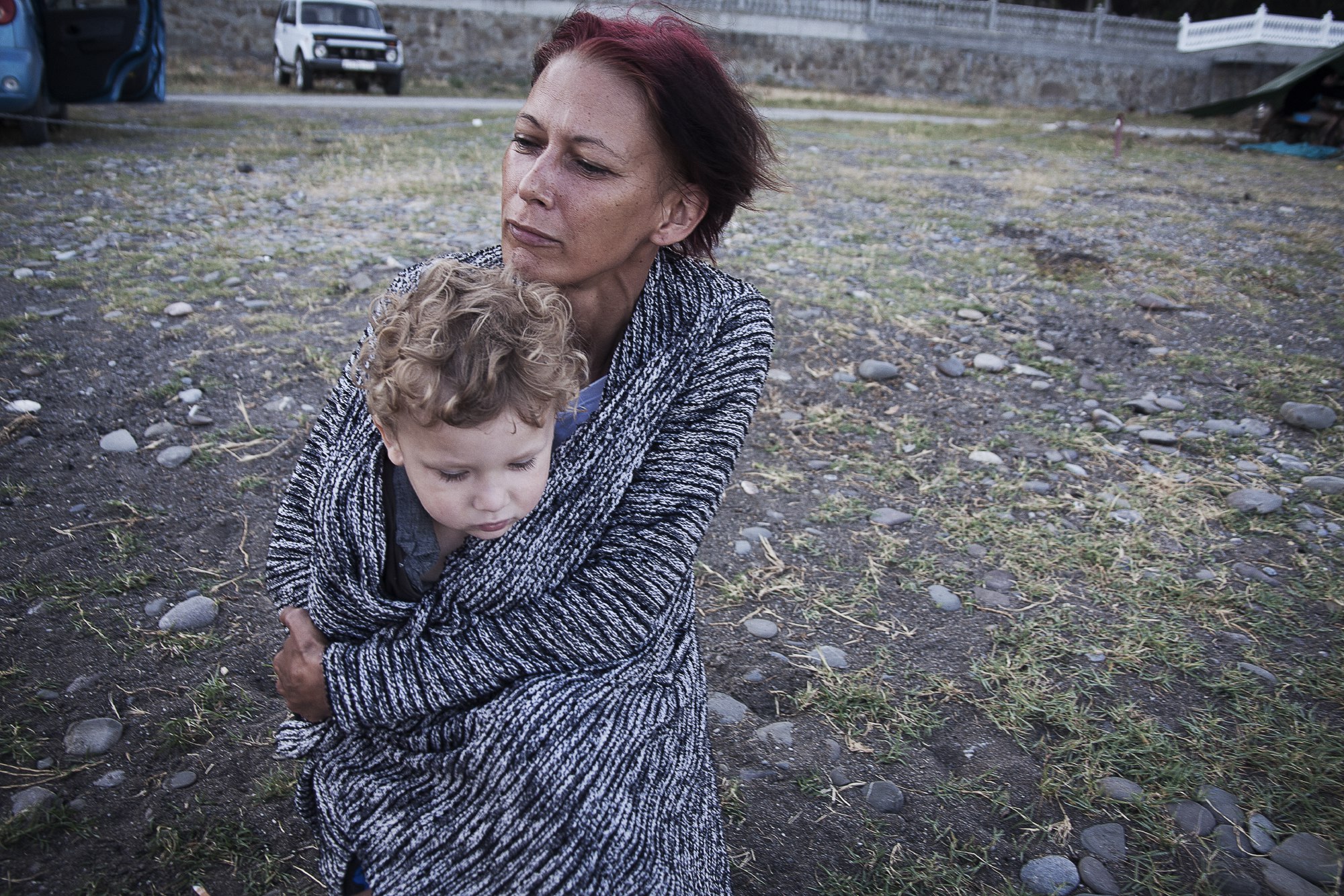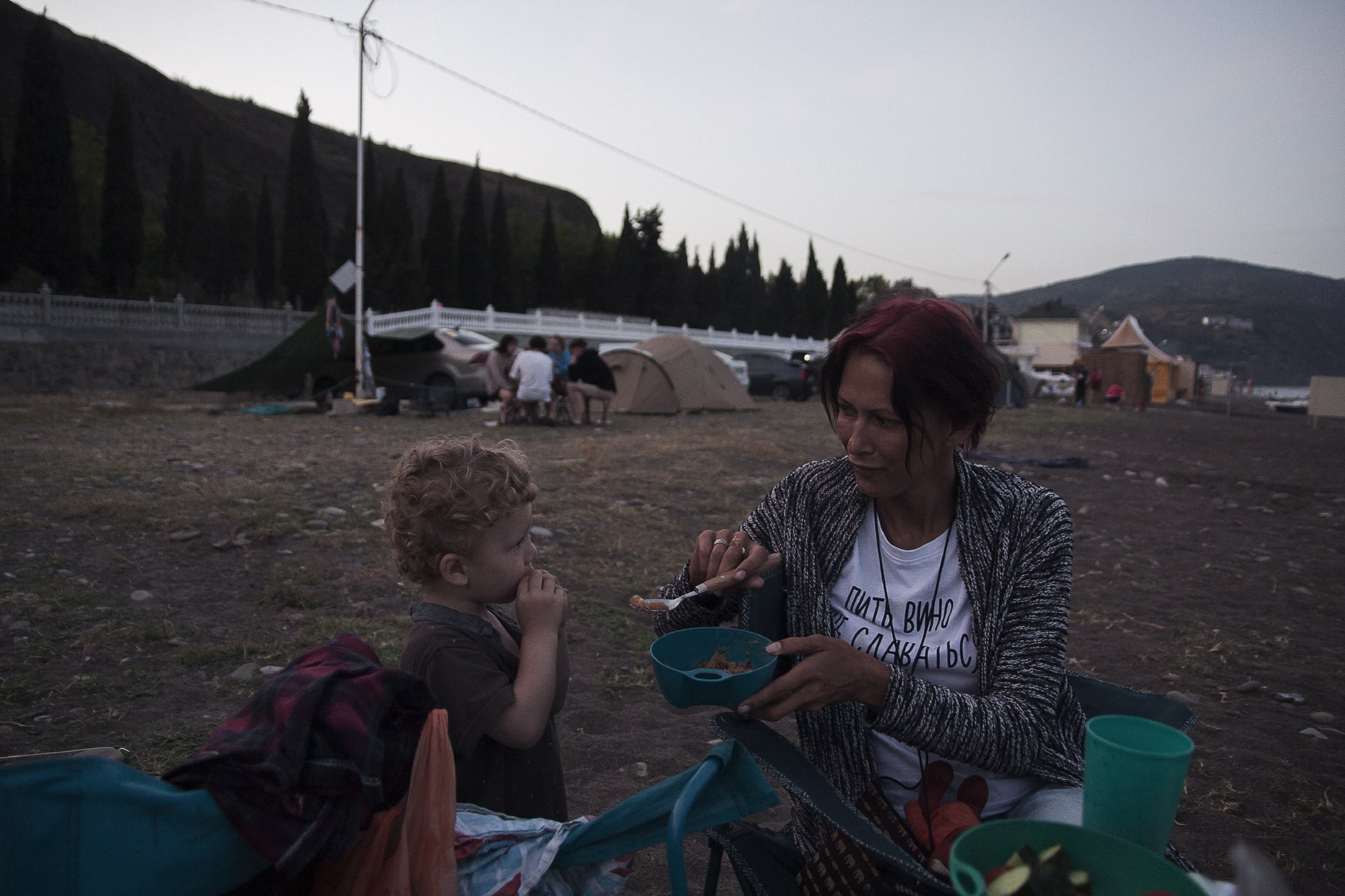 Ирина с младшим сыном в кемпинге на берегу Черного моря