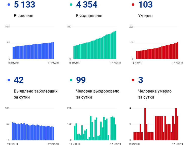 Согласно официальным данным, за последние сутки по Владимирской области COVID-19 заразились 42 человека. Выздоровело 99 пациентов. Общее число заболевших и выздоровевших составило 5 133 и 4 354 соответственно.