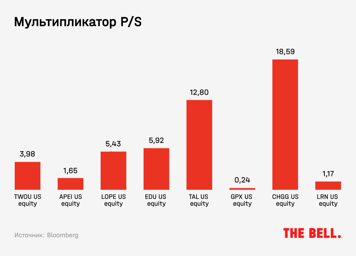 - Самые низкие мультипликаторы — у компаний с капитализацией менее $1 млрд: American Public Education, К12 и GP Strategies. Но и прогнозы по росту выручки у этих компаний более скромные.