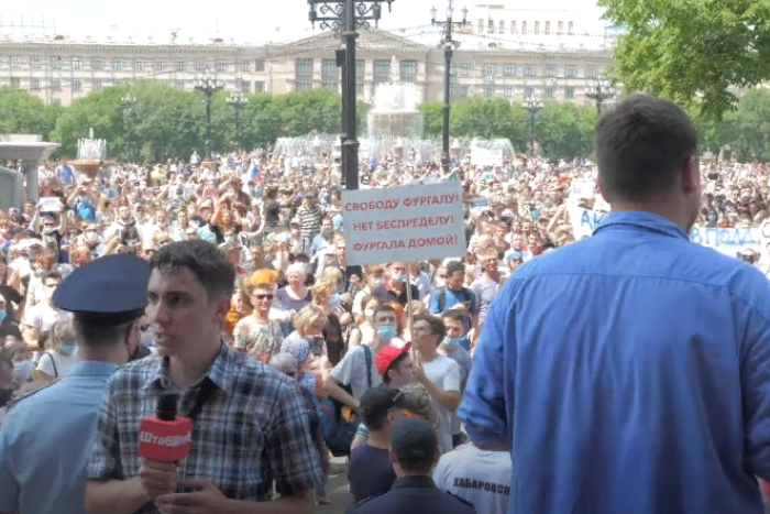 Протестующие прошли по улицам города мирным маршем. По данным местного издания Dvhab.ru, на митинг вышли от 15 до 30 тысяч человек, «Коммерсантъ» сообщил о 50 тысячах участников. Собравшиеся требовали освободить Фургала и судить его в Хабаровске, а не в Москве.