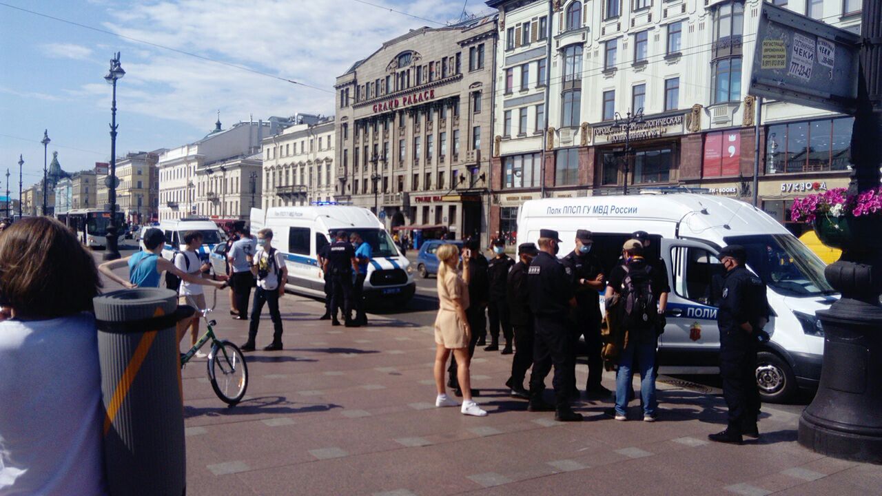 Как сообщает телеграм-канал «ПЬЯTNIЦА», на акции уже спустя 12 минут после ее начала задержали восемь человек. Известно о десяти задержанных. Корреспондент «Бумаги» сообщил, что у Гостиного двора собрались около 40 человек, в их числе журналисты.