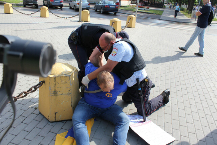 Как сообщает издание, на одного из активистов — Владимира Шипицына — полицейские надели наручники. Активист Дмитрий Негодин рассказал, что полицейские при задержании повредили ему палец и отказались вызвать скорую помощь.