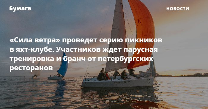 Яхтенное сообщество «Сила ветра» запустило серию летних пикников вместе с петербургскими ресторанами и барами. Они будут проходить по средам на территории Центрального яхт-клуба.