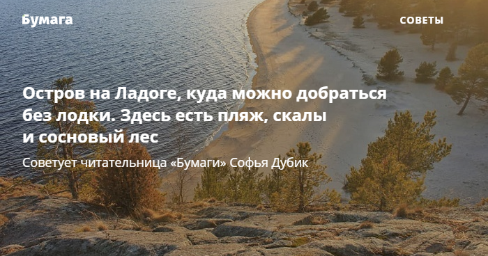 Из плюсов: на остров можно добраться без лодки, потому что в 2005 году был построен мост. Разнообразная природа: повезет и любителям пляжного отдыха, и карельских шхер, а еще есть несколько скал, откуда открываются красивые виды. Благодаря этому прогуливаться по острову очень интересно.