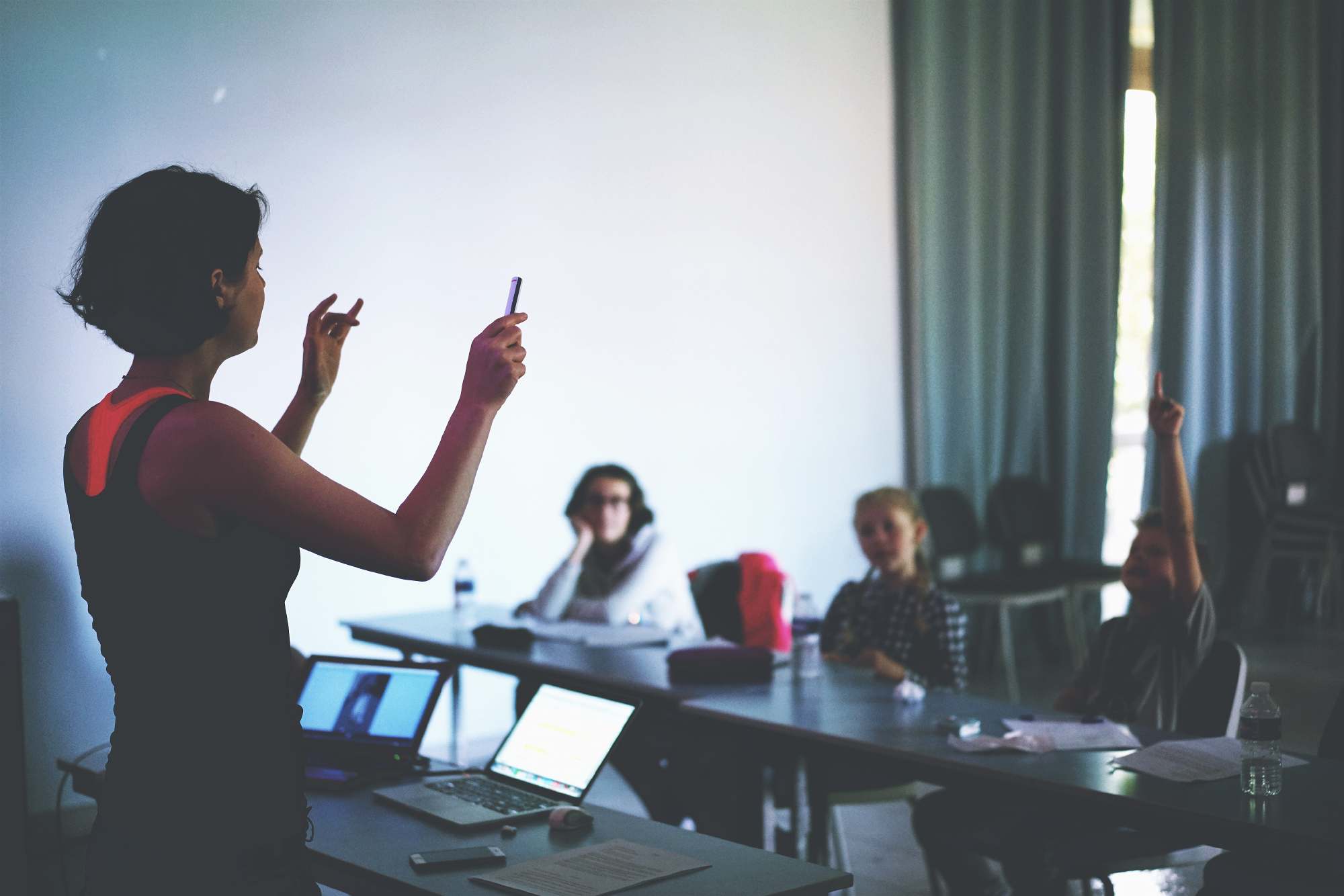 — Дальше они разъезжаются на два месяца по домам, и в это время идет преподавание в маленьких (по пять — семь человек, больше нельзя) онлайн-группах. А потом, в начале следующего триместра, они снова собираются вместе — и в результате у нас получается четыре длинные очные сессии в год, три в начале триместров и одна в конце года.