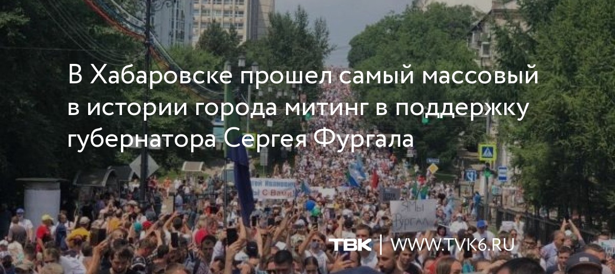 Напомним, на несанкционированную акцию в защиту Сергея Фургала в Хабаровске 11 июля собрались десятки тысяч человек. Его задержали 9 июля по подозрению в убийствах 15-летней давности. Сразу после ареста на митинги вышли сначала жители Хабаровска, затем присоединились другие города. Все они требуют освободить губернатора.