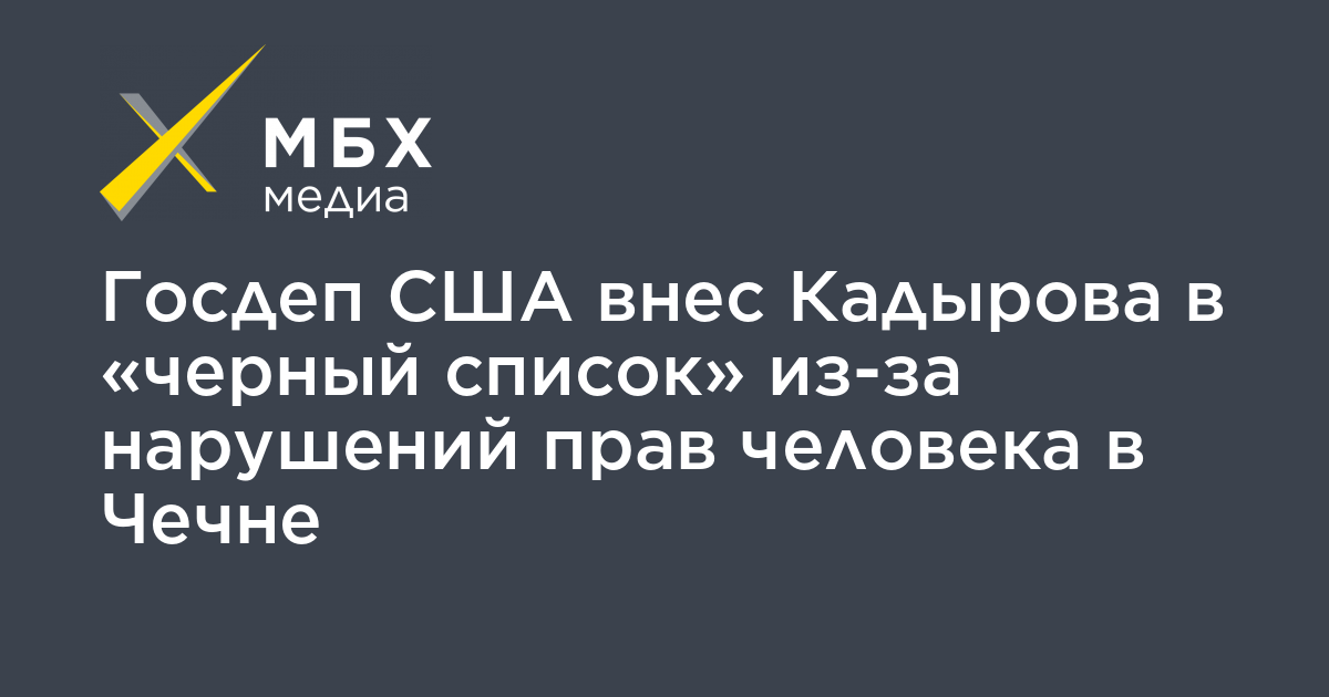 Госдепартамент США внес главу Чечни Рамзана Кадырова в «черный список» лиц, причастных к нарушению прав человека, сообщается на сайте ведомства.