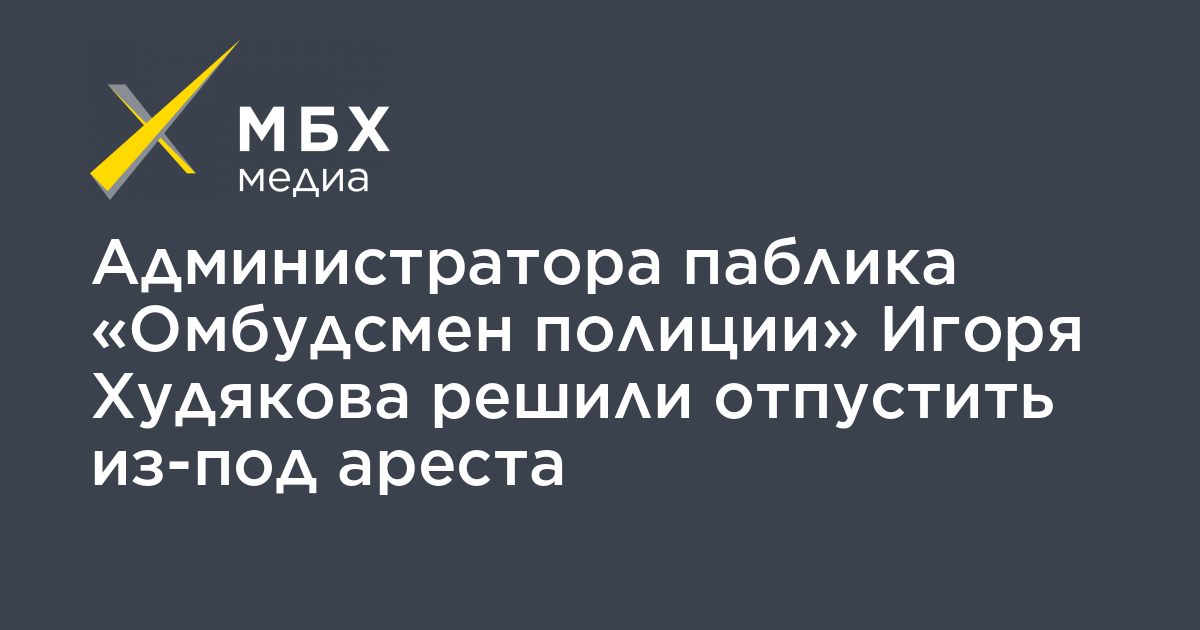 Следователь решил отменить меру пресечения в виде ареста обвиняемому по делу о порнографии администратору паблика «Омбудсмен полиции» Игорю Худякову. Об этом сообщил «МБХ медиа» адвокат Максим Пашков.