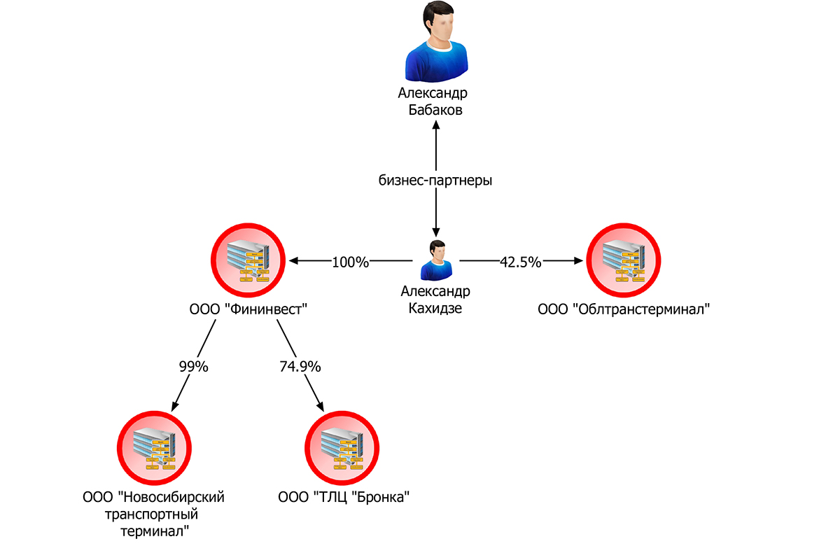 Две компании из списка напрямую связывают с сенатором Бабаковым — ЛКС и «Облтранстерминал». Еще три компании связаны с близким к Бабакову Александром Кахидзе — «ФинИнвест», «Новосибирский транспортный терминал», транспортно-логистический центр «Бронка».