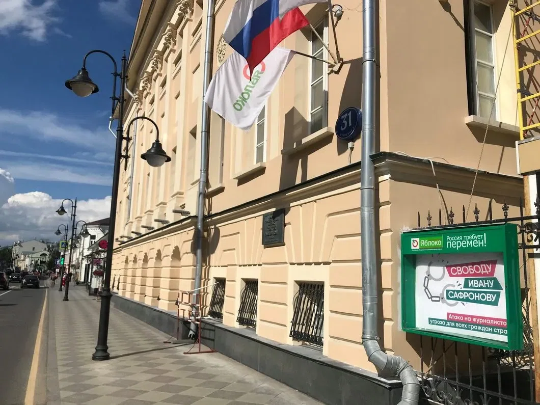 Сотрудники правоохранительных органов потребовали снять плакат с надписью «Свободу Ивану Сафронову» со стенда, размещенного на здании московского офиса партии «Яблоко». Об этом в своем фейсбуке рассказал руководитель пресс-службы политического объединения Игорь Яковлев.