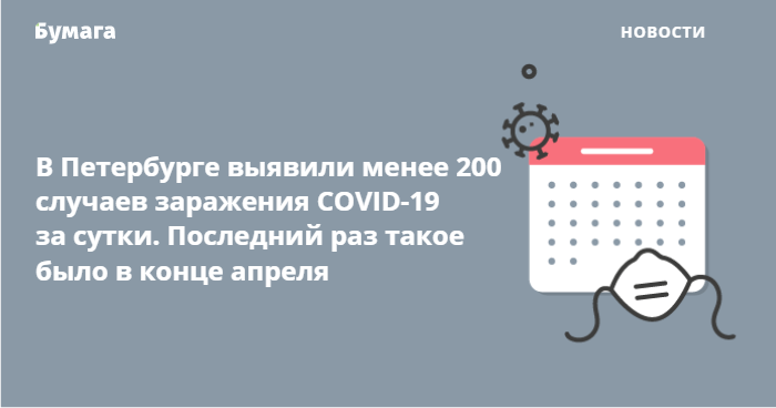С 10 июля, когда коронавирус выявили у 300 человек, количество заболевших в Петербурге ежедневно падает. Последний раз менее 200 случаев в городе зафиксировали 27 апреля — тогда COVID-19 обнаружили у 198 человек.
