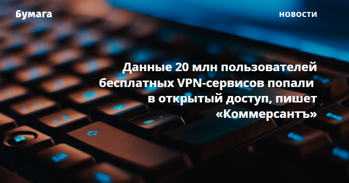 Исследовательская группа vpnMentor обнаружила в открытом доступе данные 20 миллионов пользователей бесплатных VPN-cервисов. Об этом сообщает «Коммерсантъ».