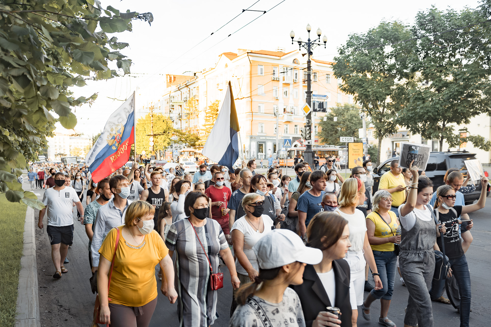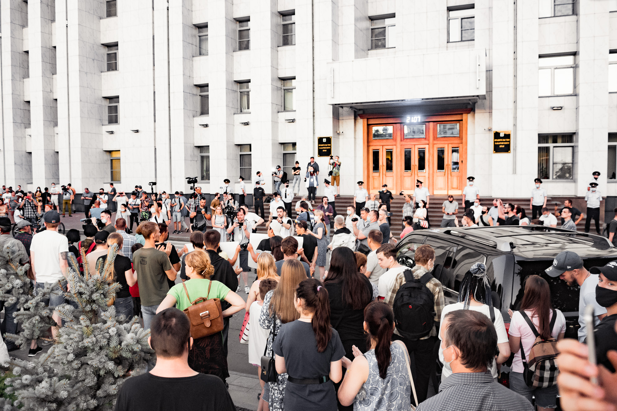 В первый же вечер после прибытия нового главы региона у здания краевого правительства собралось несколько сотен человек. "Дегтярев, выходи", – дружно скандировали митингующие. Но безуспешно. После этого толпа нестройной колонной отправилась по привычному маршруту: Муравьева-Амурского, Шевченко, Комсомольская, Ленина и Пушкина. Чтобы вернуться к зданию правительства на площадь Ленина.