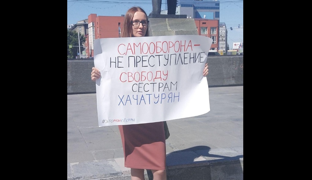 В центре Новосибирска прошёл одиночный пикет в поддержку сестёр Хачатурян. Активистка Ангелина Бессмертная вышла на площадь Ленина с плакатом "Самооборона – не преступление". На прошлой неделе генеральная прокуратура РФ утвердила сёстрам Хачатурян обвинение в убийстве отца по предварительному сговору, хотя ранее следственный комитет возвращал дело с призывом переквалифицировать действия сестёр на необходимую оборону.
