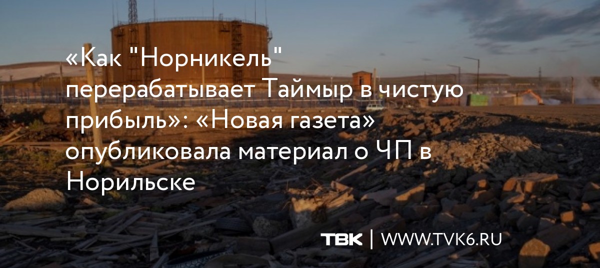 «Как "Норникель" перерабатывает Таймыр в чистую прибыль»: «Новая газета» опубликовала материал о ЧП в Норильске