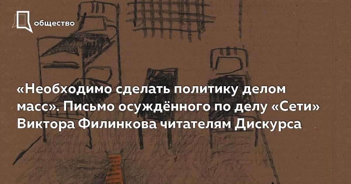«Необходимо сделать политику делом масс». Письмо осуждённого по делу «Сети» Виктора Филинкова читателям Дискурса
