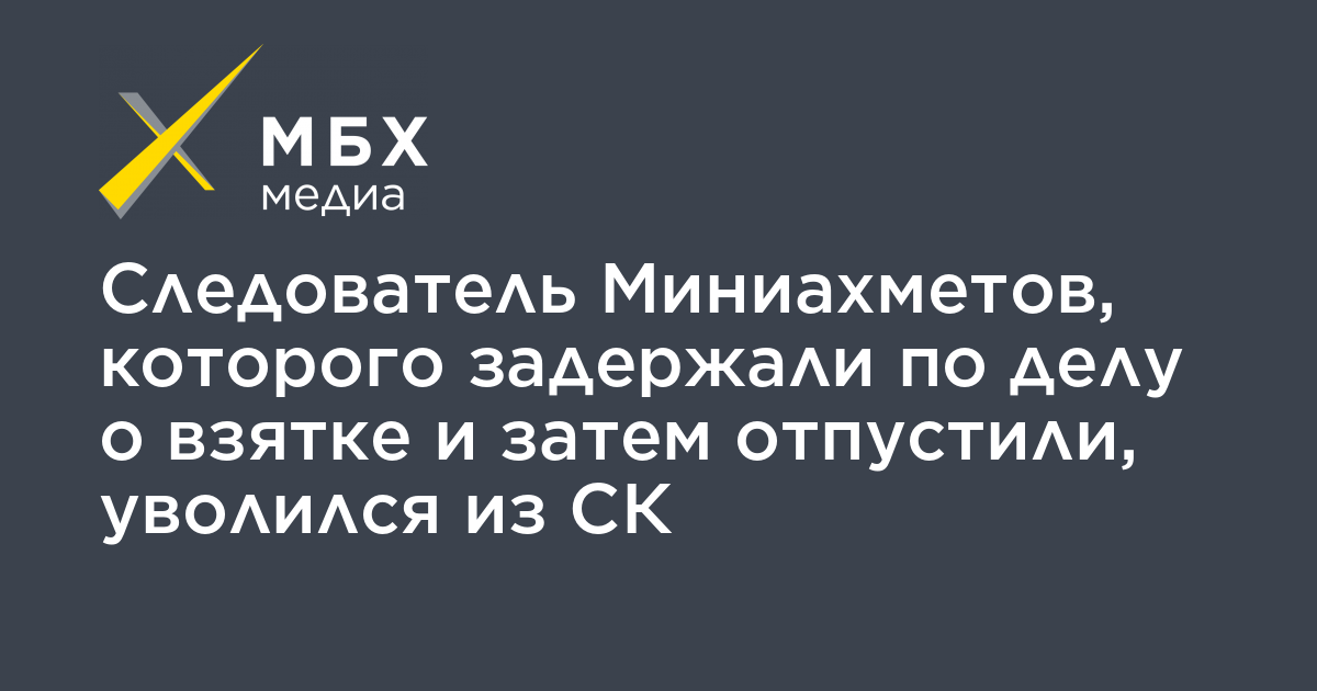 Старший следователь Следственного комитета по особо важным Руслан Миниахметов, которого задерживали по делу о взятке, но затем отпустили, уволился из ведомства. Об этом сообщает РБК со ссылкой на источник.