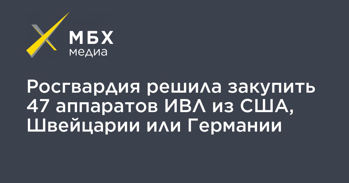 Росгвардия планирует закупить 47 аппаратов искусственной вентиляции легких, произведенных в США, Швейцарии или Германии. Соответствующие запросы цен на аппараты размещены на портале госзакупок, обнаружило «МБХ медиа».