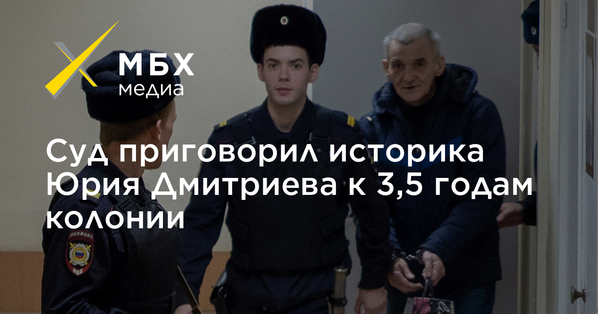 Петрозаводский городской суд приговорил главу карельского «Мемориала» историка Юрия Дмитриева к 3,5 годам колонии общего режима. Об этом сообщает корреспондент «МБХ медиа».