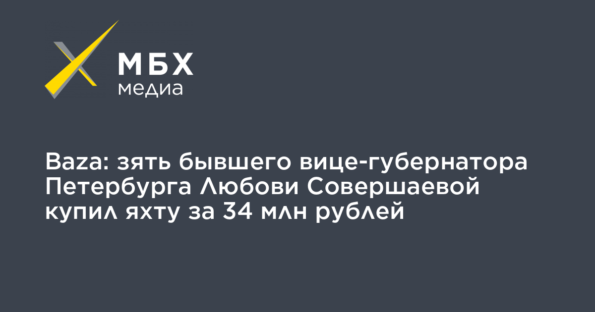 Baza: зять бывшего вице-губернатора Петербурга Любови Совершаевой купил яхту за 34 млн рублей