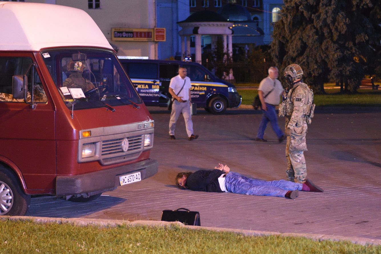 Захватчиком оказался 44-летний уроженец Оренбургской области Максим Кривош. Его дважды судили за разбой, мошенничество, бандитизм, вымогательство. Он отсидел в тюрьме около 10 лет. В полиции сообщили, что Кривош имеет психические расстройства и наблюдался у психиатра (позднее глава МВД заявил, что преступник не проходил психиатрическое лечение). В 2014 году он издал книгу «Философия преступника» тиражом 400 экземпляров, в которой заявил, что вырос в благополучной семье, учился в семинарии, но насмотрелся боевиков и «решил стать крутым». «Меня 15 лет исправляют, но я не исправился… Есть лишь одно, чего я не могу — не быть Преступником», — приводил отрывок из книги Кривоша замглавы МВД Украины Антон Геращенко.