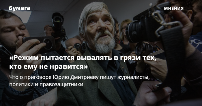«Бумага» собрала мнения журналистов, писателей, правозащитников и политиков о приговоре Юрию Дмитриеву.
