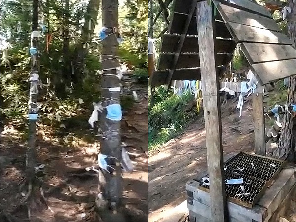 Местный фотограф Светлана Казина сообщает, что туристы привязывают к священным деревьям, загадывая желание, не только медицинские маски, но и перчатки и даже носки.. "Поток туристов рванул в Горный Алтай, на всех перевалах наблюдается вот это... Медицинские маски, перчатки, носки, целлофановые пакеты, презервативы, шнурки и носовые платки – в дар горным Духам и Золотому Алтаю", - комментирует видео с одного из таких ритуальных мест Казина.