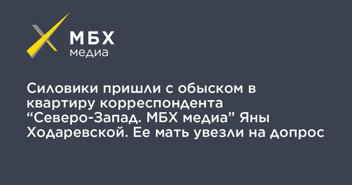 Силовики пришли с обыском в квартиру корреспондента «Северо-Запад. МБХ медиа» Яны Ходаревской. Ее мать увезли на допрос