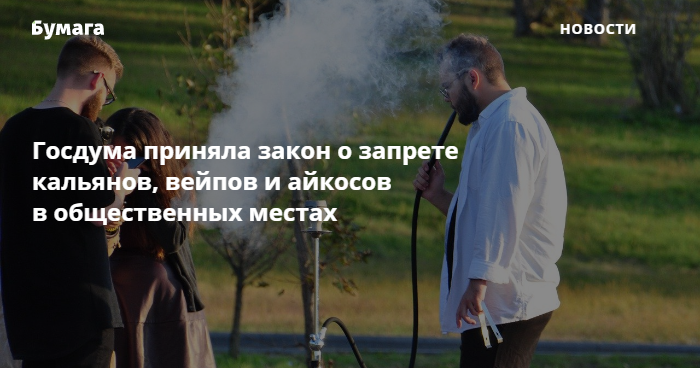 Государственная дума приняла в третьем, окончательном чтении закон, который приравнивает электронные сигареты, кальяны, вейпы и системы нагревания табака, в том числе IQOS, к табачным изделиям. Об этом говорится на сайте палаты.