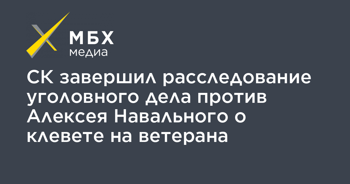 Следственный комитет завершил расследование уголовного дела против политика Алексея Навального о клевете (часть 2 статьи 128.1 УК), сообщила «МБХ медиа» адвокат Ольга Михайлова.