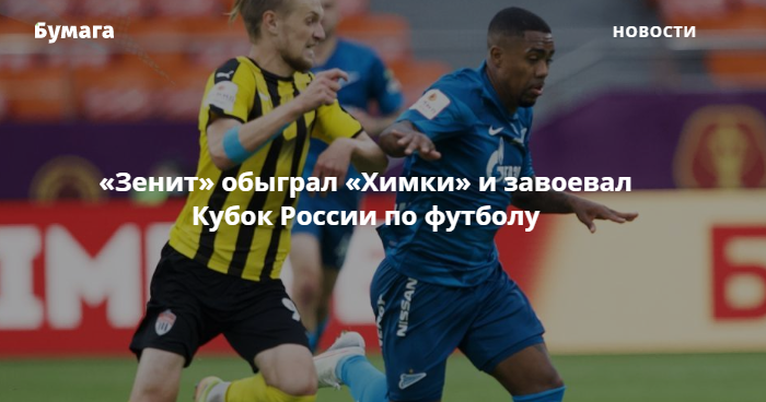«Зенит» в четвертый раз в своей истории выиграл Кубок России по футболу. Вместе с победой в чемпионате страны клуб из Петербурга оформил золотой дубль.