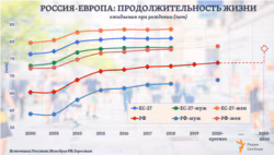 Для сравнения: в странах Европейского союза (в среднем по всем) уровень ожидаемой при рождении продолжительности жизни в 78 лет был пройден в 2003-2004 годах.