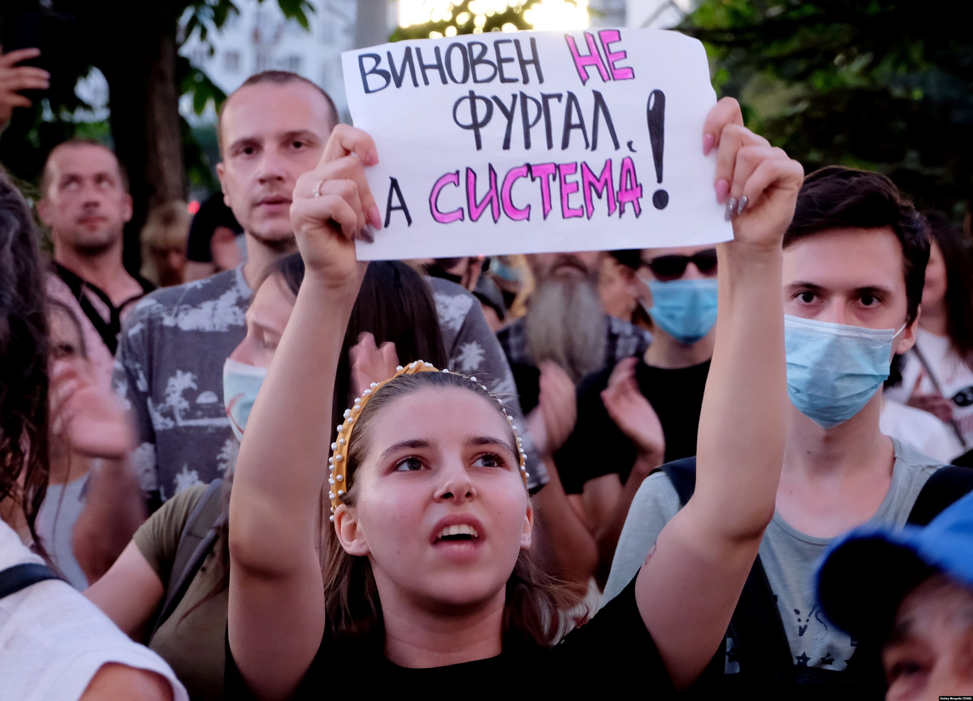 - После задержания избранного губернатора края Сергея Фургала в Хабаровском крае и соседних регионах ежедневно проходят митинги и пикеты. Чаще всего митингующие требуют для губернатора "справедливого суда в регионе". 22 июля они потребовали отставки президента России Владимира Путина.