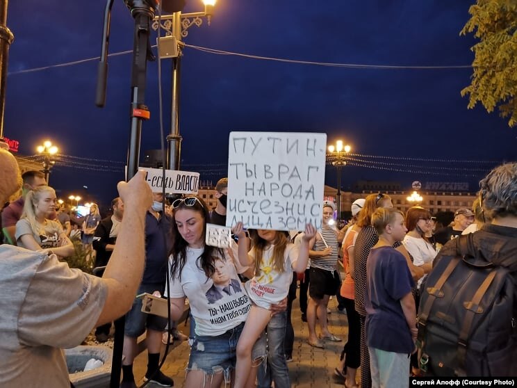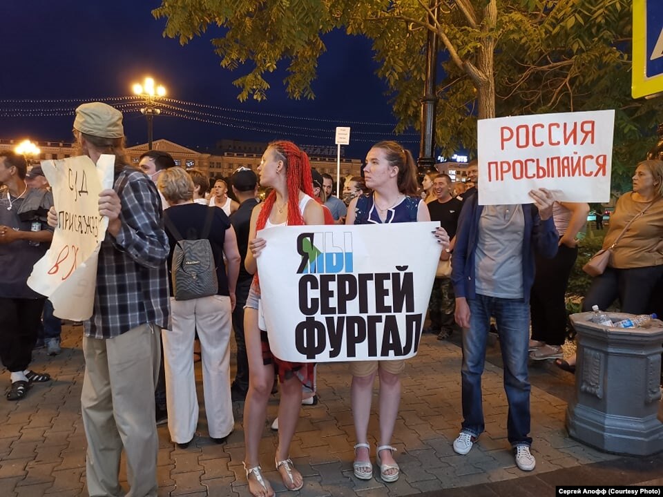 • После задержания избранного губернатора края Сергея Фургала в Хабаровском крае и соседних регионах ежедневно проходят митинги и пикеты. Чаще всего митингующие требуют для губернатора "справедливого суда в регионе". 22 июля они потребовали отставки президента России Владимира Путина.