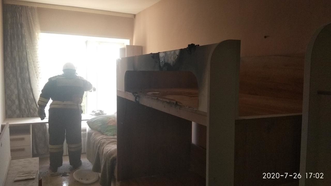 Сообщение в МЧС поступило около 16:30. На место незамедлительно выехали пожарные подразделения. Очаг возгорания находился на втором этаже в одной из жилых комнат. Там тлел матрас на кровати. Возгорание площадью 1,5 квадратных метра удалось ликвидировать до прибытия пожарных.