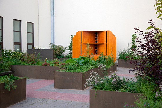 © Артем Филатов Артем Филатов, Алексей Корси. Сад им. Тема «рассеянное тело» пронзительно, одновременно смиренно и мудро определяет «Сад им.» — реально устроенный сад, примыкающий к залу с печами кремации Нижегородского крематория. В саду им. любая тема культурного дискурса как-то умаляется, исчезает, рассеивается. По контрасту с барочным многословием торжественного прощания видео «ПРОВМЫЗЫ» художник Артем Филатов никаким культурным кодам не дает взять верх над безмолвием природы. Устроенный им и Алексеем Корси сад (скорби о «них», усопших и рассеянных в пепел) не совпадает с японскими садами мудрости, с европейскими садами искусства царства флоры. В несложном лабиринте присутствуют метафоры разных экосистем (лес, луг, поле, болото). Посажены цветы, травы, кустарники и деревья, живущие в этих экосистемах. Никакого насилия ради эффектов и экзотических красот. Память тут творит сама природа. А храмом является органоподобный музыкальный аппарат. Его, как и минималистские скамьи сада, придумал и спроектировал художник и архитектор Алексей Корси (акустика — Леонид Рудометкин, изготовление — Александр Кудряшов). Голос Зои Петровой пропевает латинские названия органов человеческого тела. Немыслимо прекрасное звучание хорала создает сложнейшую и бережную церемонию прощания с телесной ипостасью, в которой каждая функция организма названа поименно. В новой череде превращений эта исчезнувшая плоть обеспечит жизнью новый природный круг.