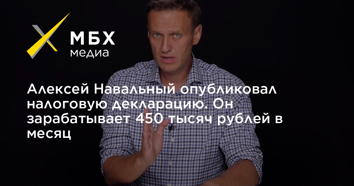 Алексей Навальный опубликовал налоговую декларацию. Он зарабатывает 450 тысяч рублей в месяц