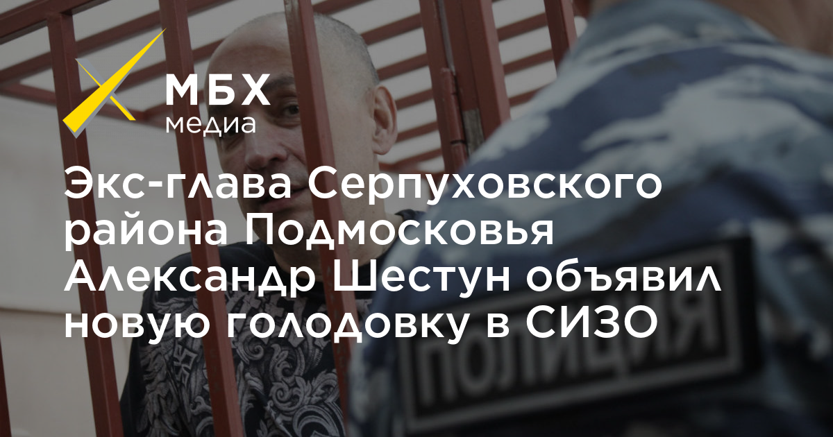 Бывший глава Серпуховского района Подмосковья Александр Шестун, обвиняемый в превышении должностных полномочий и получении взятки в особо крупном размере, объявил новую голодовку в СИЗО. Об этом «МБХ медиа» сообщила его супруга Юлия Шестун.