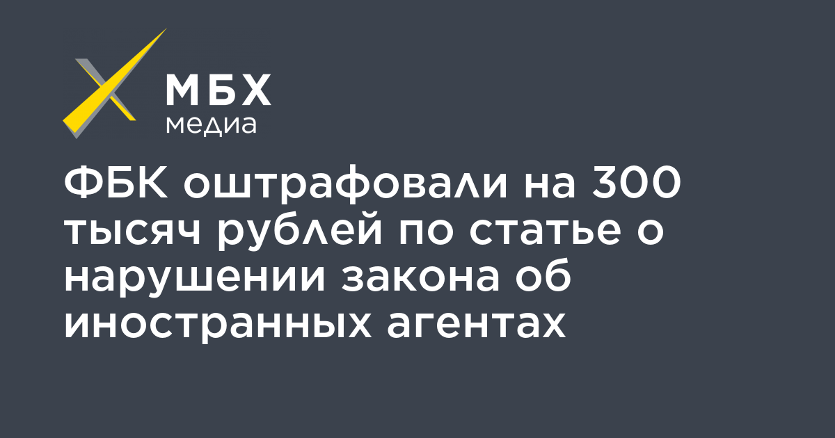 ФБК оштрафовали на 300 тысяч рублей по статье о нарушении закона об иностранных агентах