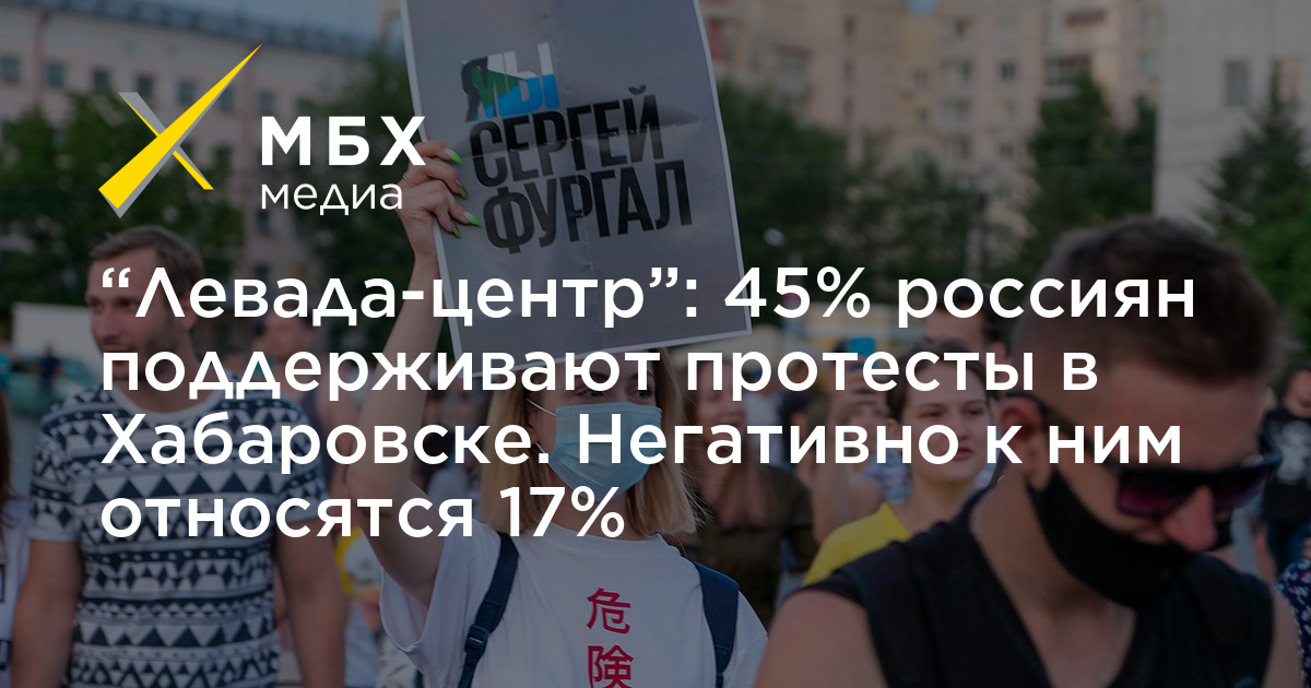«Левада-центр»: 45% россиян поддерживают протесты в Хабаровске. Негативно к ним относятся 17%
