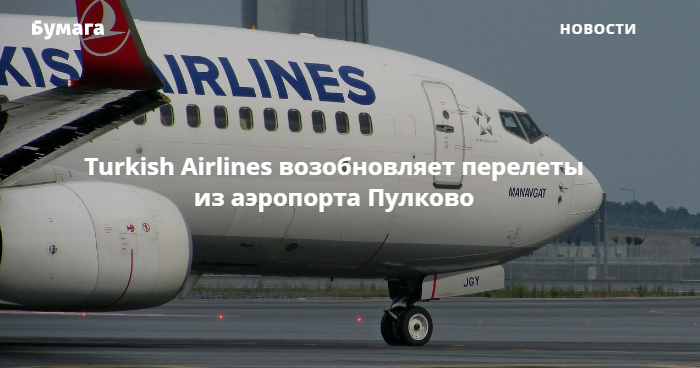 Авиакомпания Turkish Airlines возобновляет перелеты между Петербургом и турецкими городами. Об этом «Бумаге» сообщили в пресс-службе аэропорта Пулково.