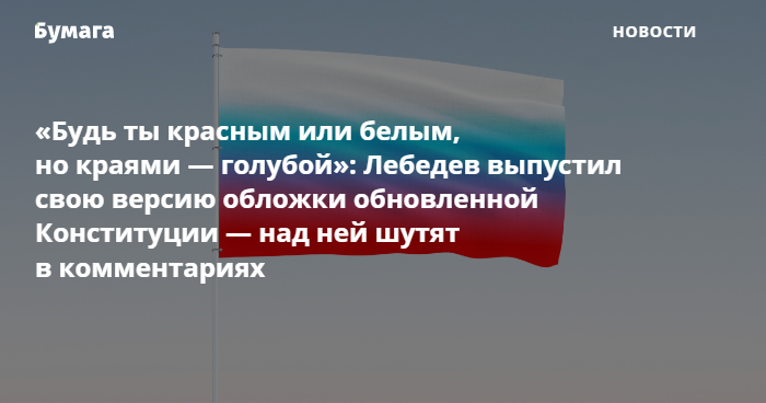 Студия Артемия Лебедева выпустила свою версию обложки обновленной Конституции и новый дизайн флага России. Об этом сообщили на сайте дизайнерской компании.